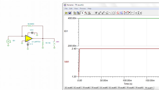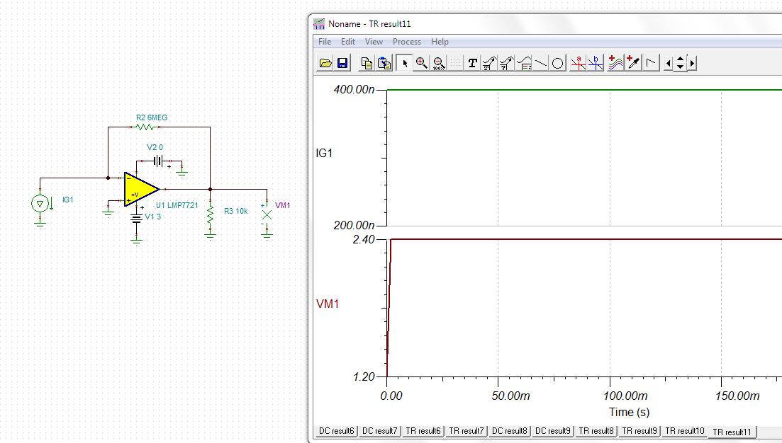 我也简单的仿真了下,没问题,我给IG1的是幅值为200nA的单位阶跃信号: