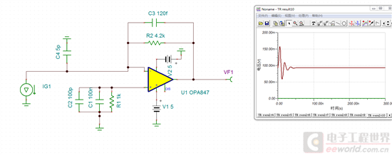 想做一个前置放大,芯片用的OPA847,现在出来的光脉冲上升下降沿时间有点大(5ns),怎样使输出光脉冲信号上升下降沿时间变小?
