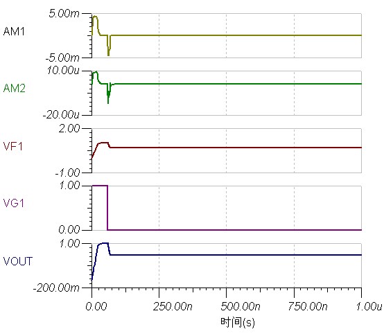使用OPA615做峰值保持,原理图采用手册中图48删掉负脉冲保持部分,仿真输入为60ns脉冲时,输出电压会在脉冲下降沿跌落几百mv,请各位大神帮忙看看哪块有问题,谢谢!