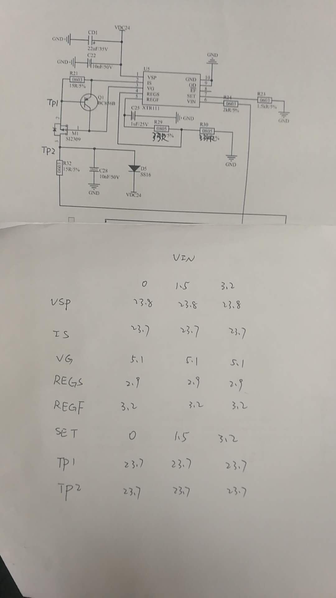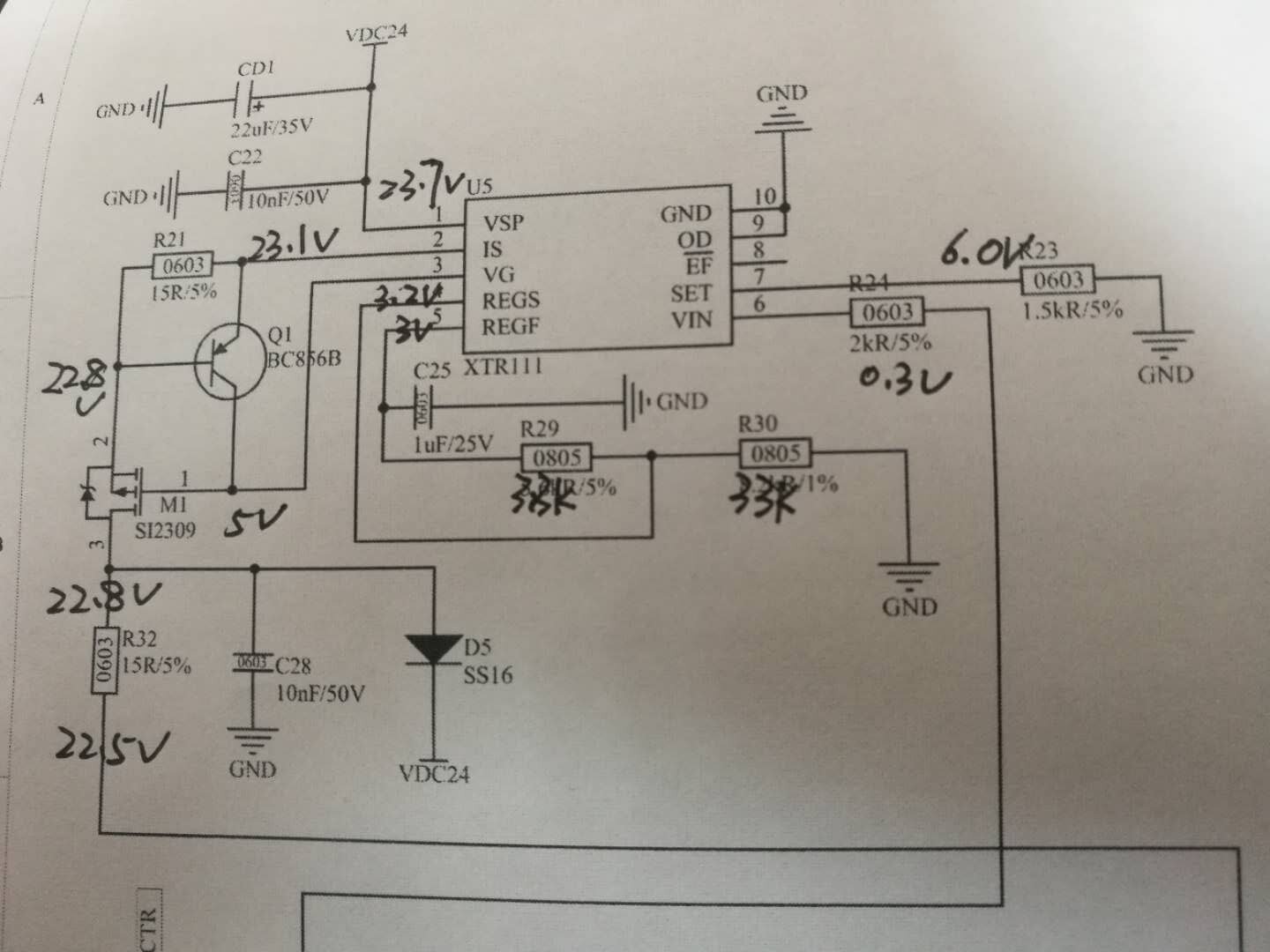 XTR111输出电流不随VIN的输入变化而变化,一直是22.5mA,下面附图是各个点的电压,求教怎么解决
