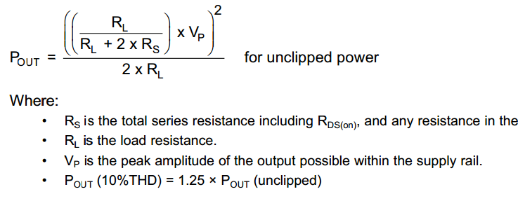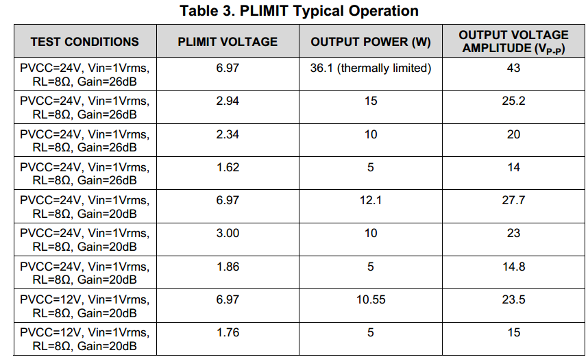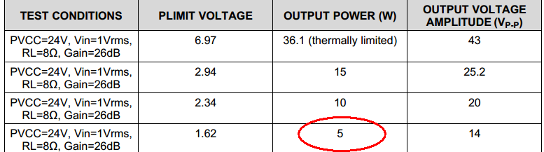 Pmax_s=30.4*30.4/8*0.57=65.9W(应该也是到达thermally limited=36.1W)   //------------------输出功率和推荐值差别较大