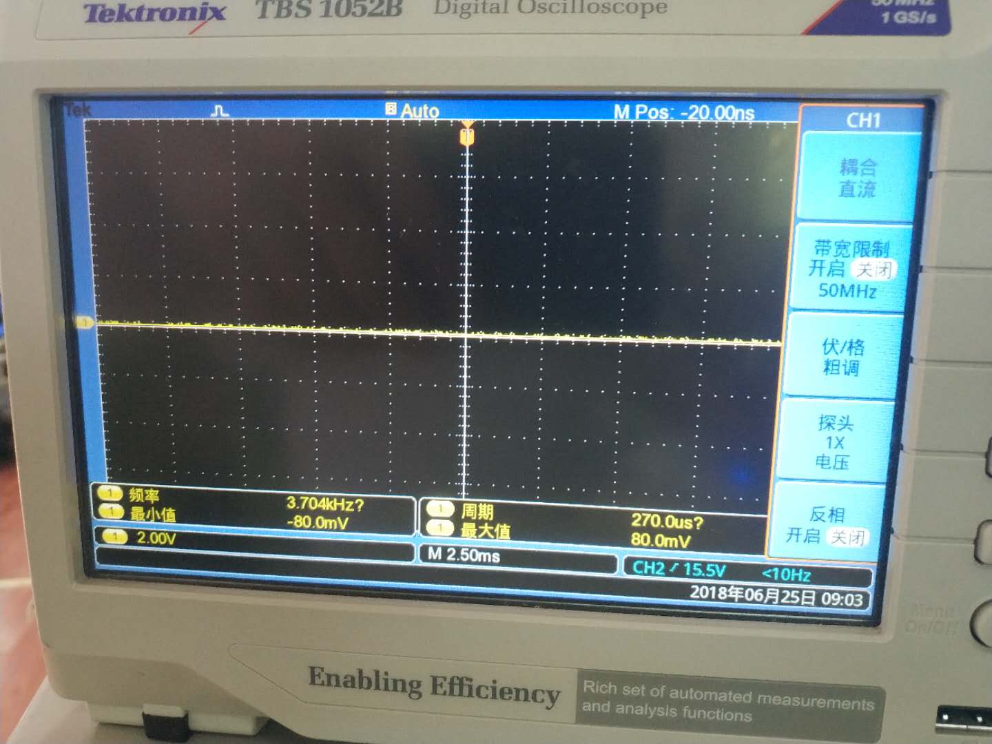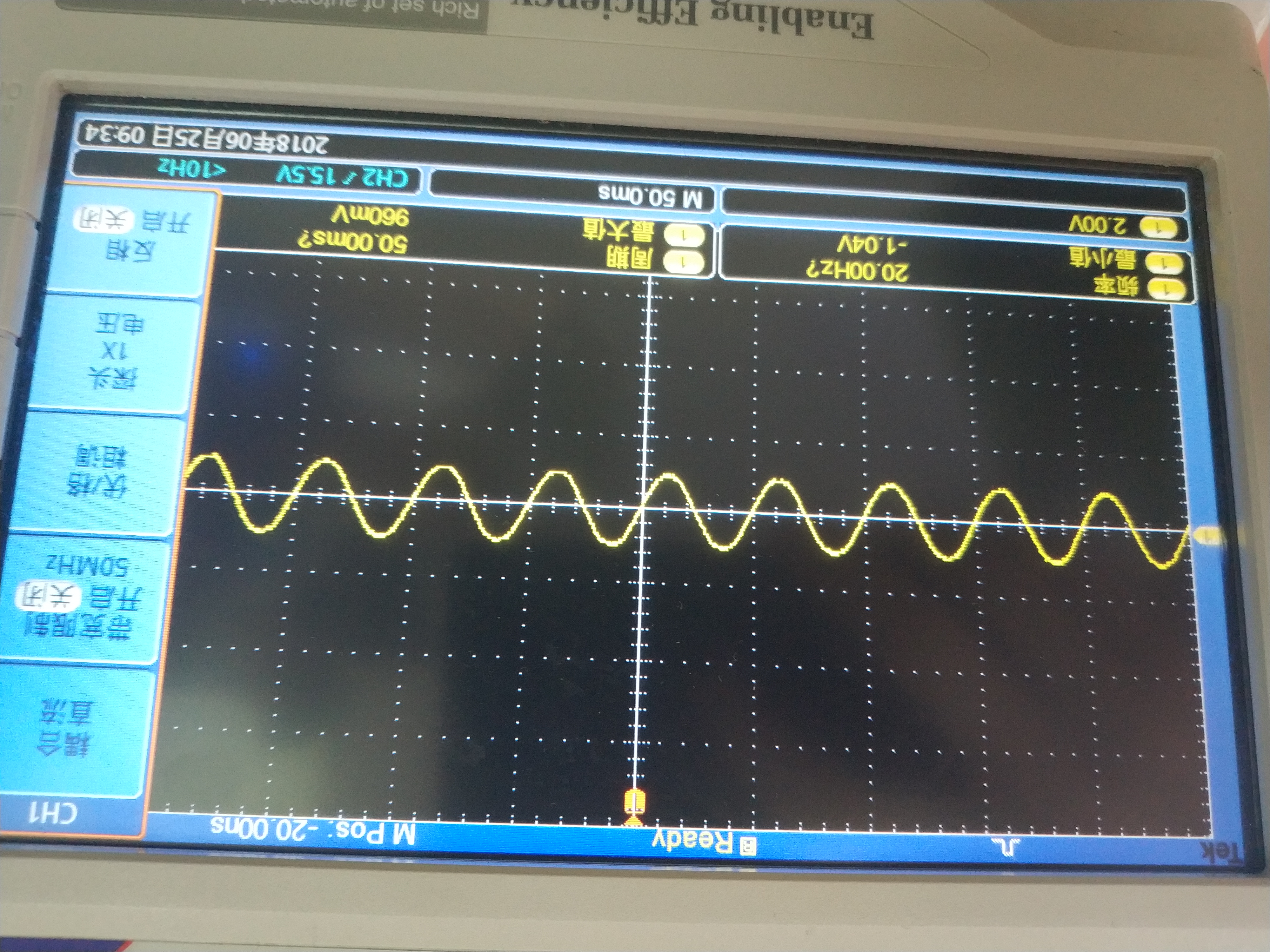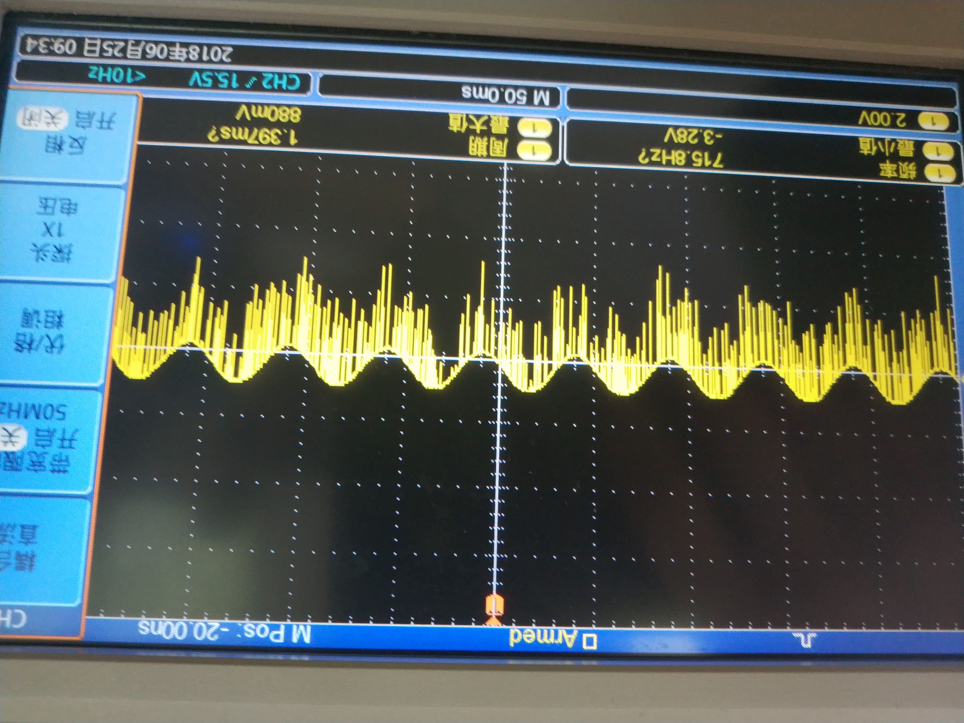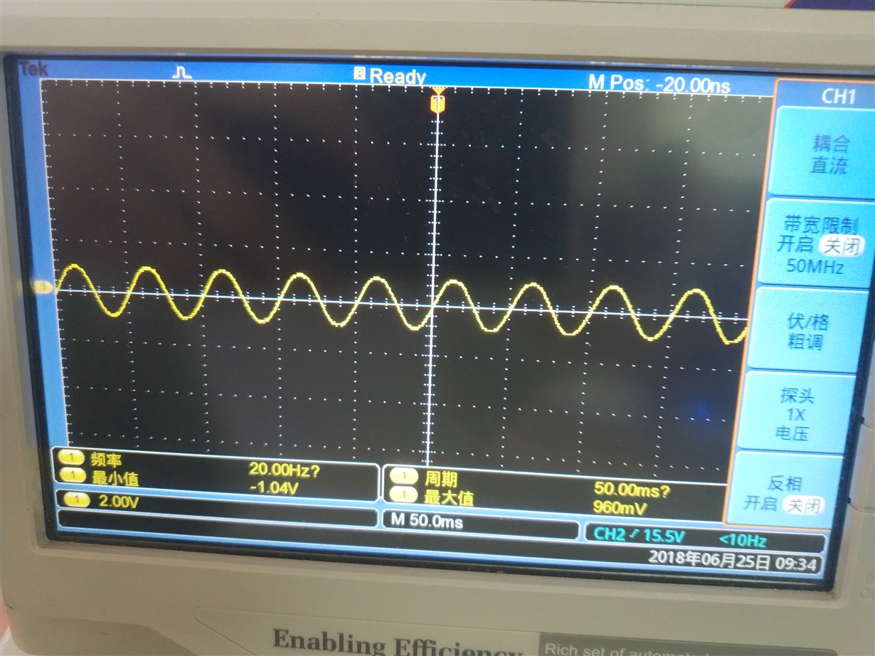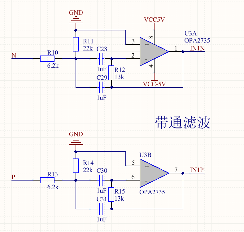 OPA2735为双通道输入,做好PCB板后并焊接好元器件后,给±3.4V电压供电,用示波器测试IN1P和IN1N,