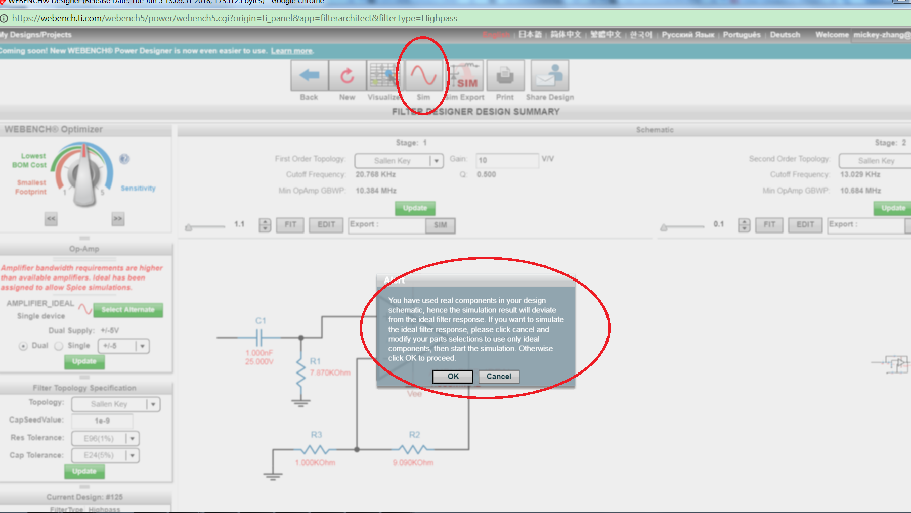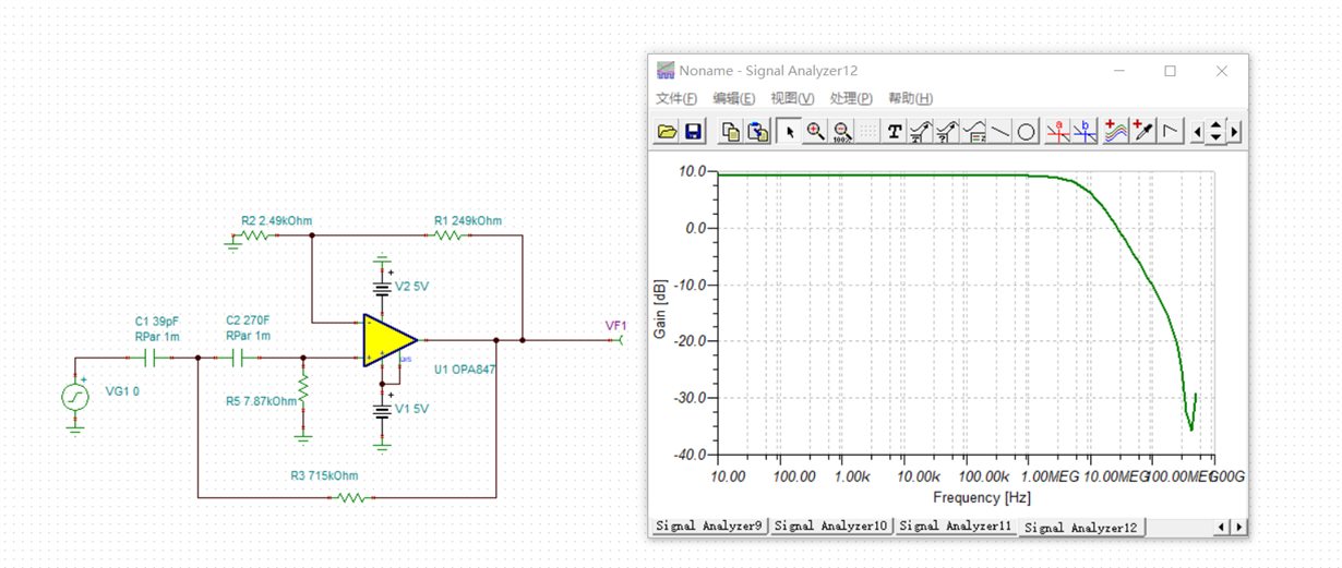 我不清楚您在Webench中是如何输入参数的,您可以将您的Webench电路导出来,在TINA中仿真,然后将运放替换成OPA847,Webench电路导出步骤如下: