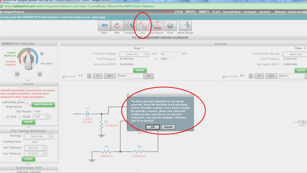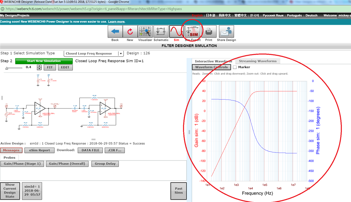 在上图中点击Sim,点击OK,然后在出现的图中您可以看到相应的波特图,点击SIM Exprot导出。