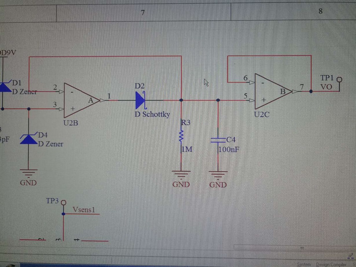 因为输出电压较高且是正弦波,我用TL2142做幅度检测。并做一级电压跟随。信号频率1MHz左右。