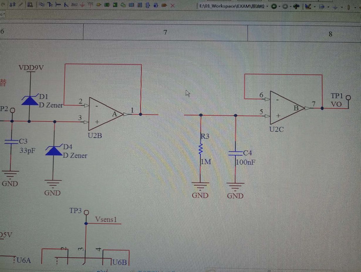• 上图U2B输出负载了一个100nf电容,非常大,而且无输出电阻或超前补偿,压摆率自然不够用。下图断开负载压摆率应该是够的,由于看不到C3之前的部分,是不是一个RC低通?是的话截止点取值够不够?信号源内阻有没有一并算上?