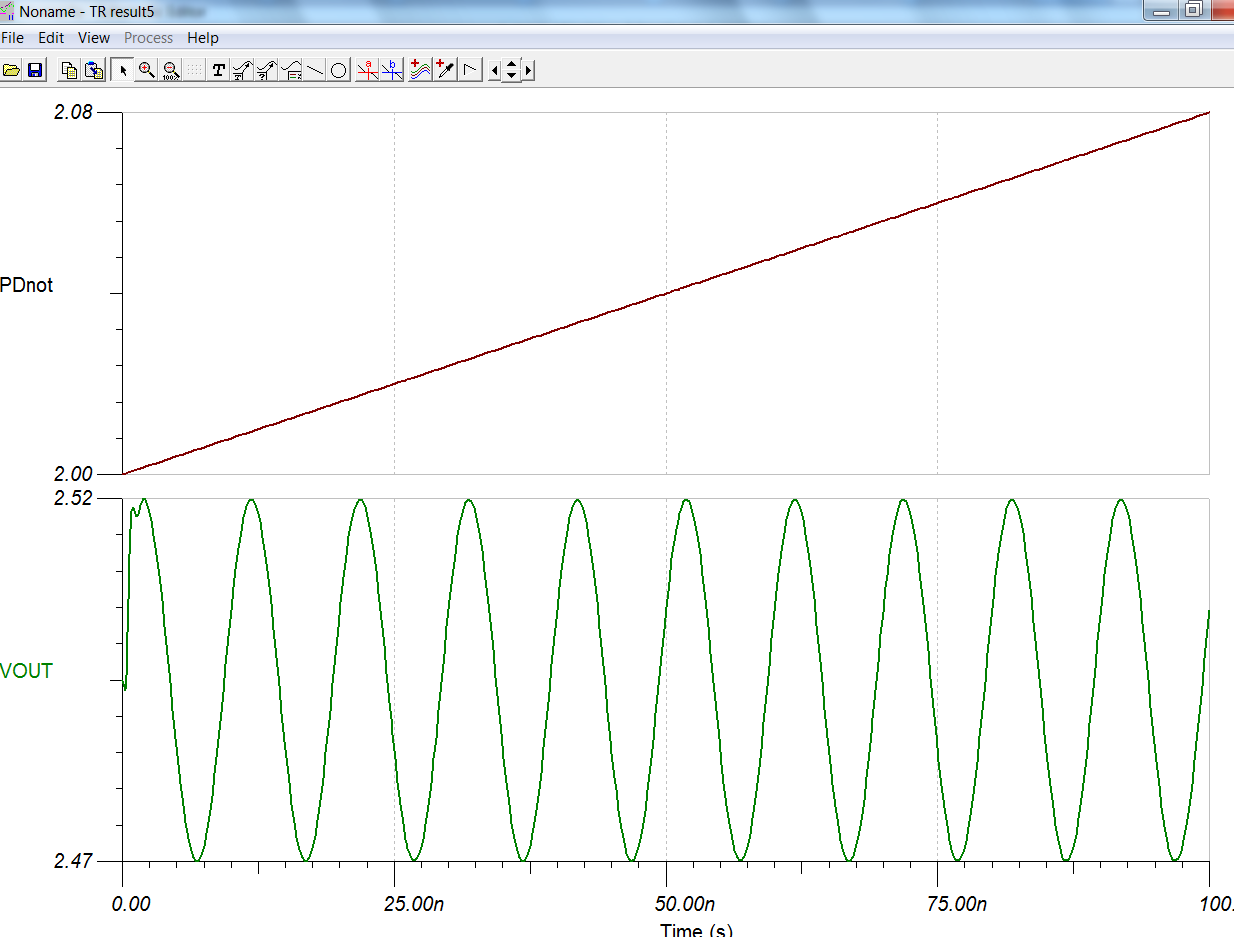 模擬參數為官網提供個SPICE, 輸入訊號為Sine wave 2.5V 100MHz。