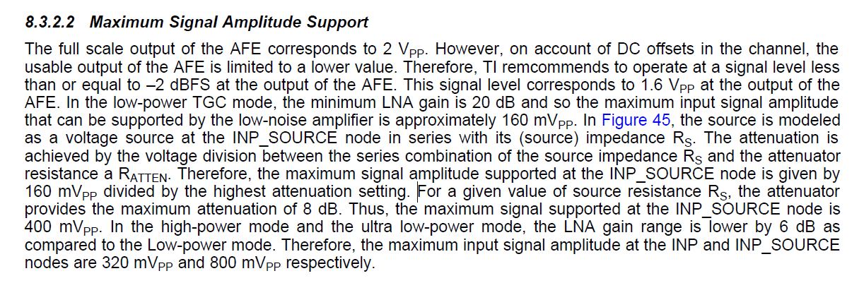 AFE5832的输入脚是成对的,包括INP和INM,但是我看数据手册里所有的应用以及官方参考设计都是INP输入单端信号,INM接一个电容然后接地。因为AFE5832的动态范围不够大,所以我需要在前级加一级压控放大器VCA8500,压控放大器VCA8500是差分输出,请问AFE5832能否直接输入VCA8500输出的差分信号?