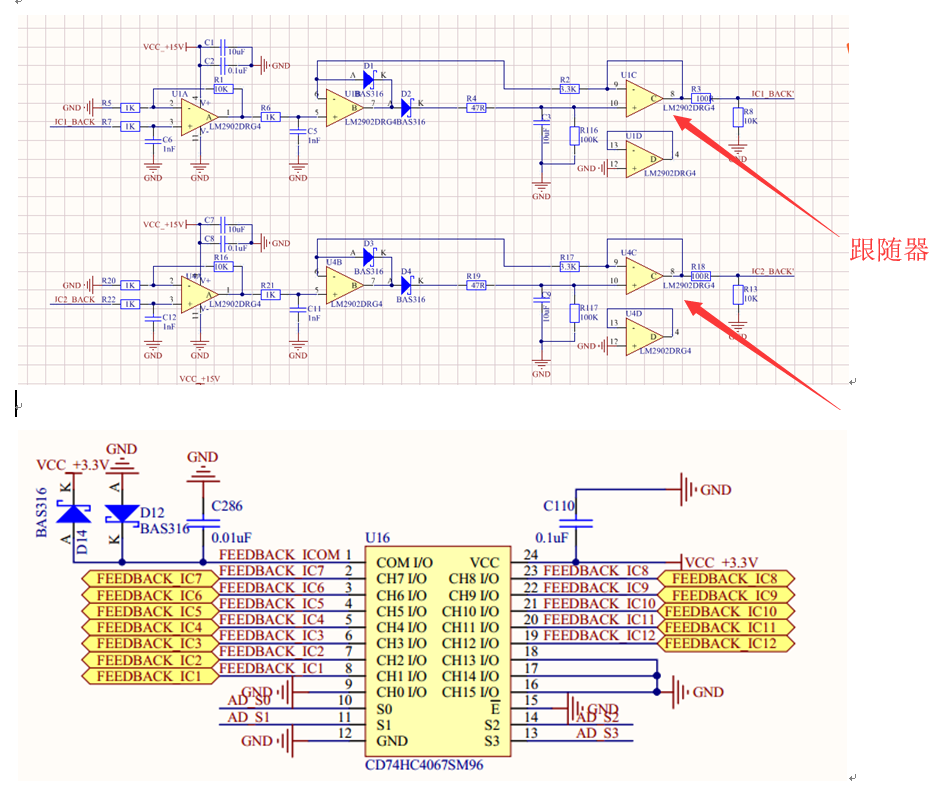 用CD74HC4067SM96 进行多通道电压采集,当输入端接LM2902运放跟随器时,上电后,I0~I15存在0.6V电压;是不是LM2902与CD74HC4067SM96 不兼容。