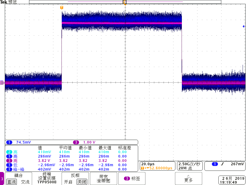 下降沿信号局部放大图,有一个20ns左右的延时;
