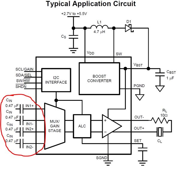 LM48560驱动器有2个输入,一个输出,请问这两个输入的区别是什么?是通过I2C设置哪一路为有效输出吗?