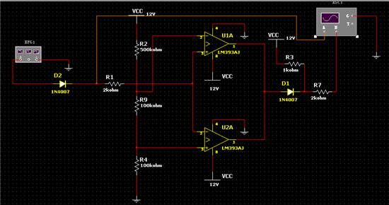 按理说应该是输出正方波,而我仿真的输出波形却输出的都是高电平。求指教