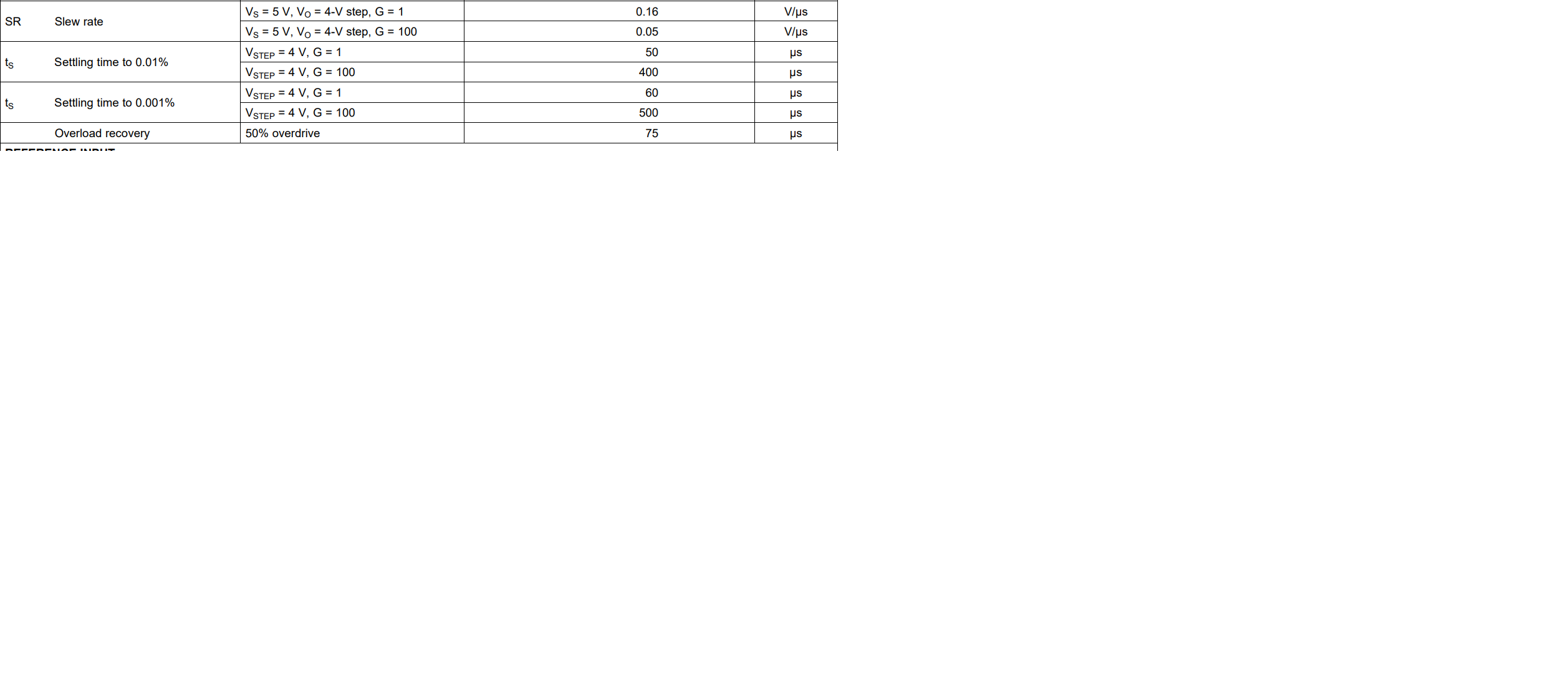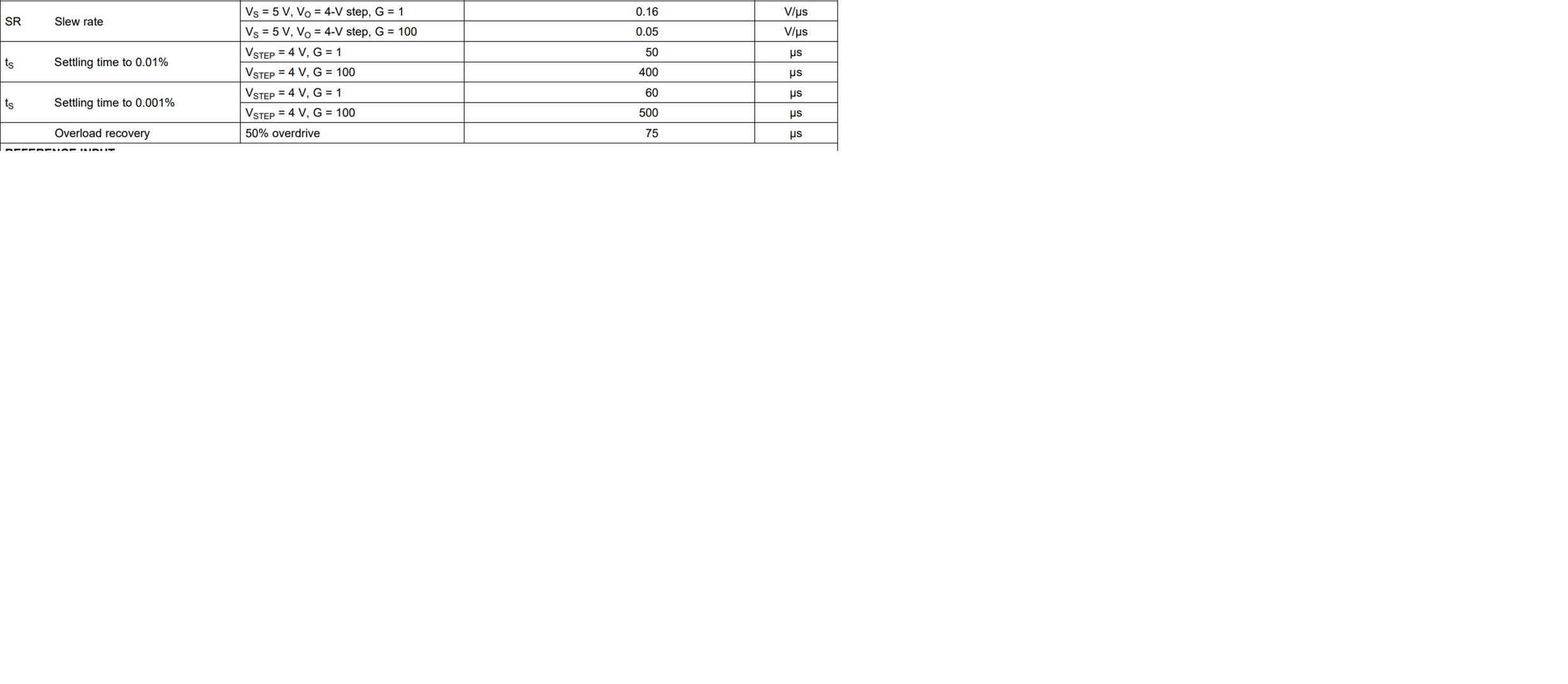 您好,您可以看下datasheet中setting time的测试条件,可以看到,建立时间和输出规定误差, 以及增益的设置影响关系都很大。