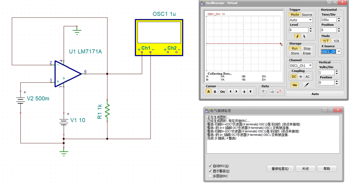 这个下面 是 换成LM7171,在单电源10V供电时的输入共模电压范围 应为1.65V-8.35V,输出电压范围1.5V-8.5V,但是输入0.5V时,输出为0,按照数据表输出应为 1.5V,麻烦大神解释一下