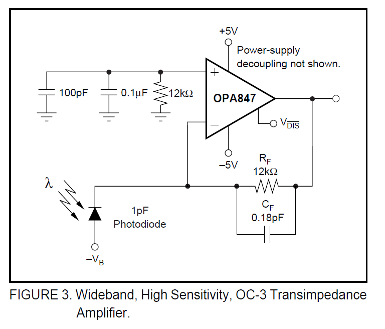 OPA847和光电二极管的接法在OPA847的数据表上表示的太简单