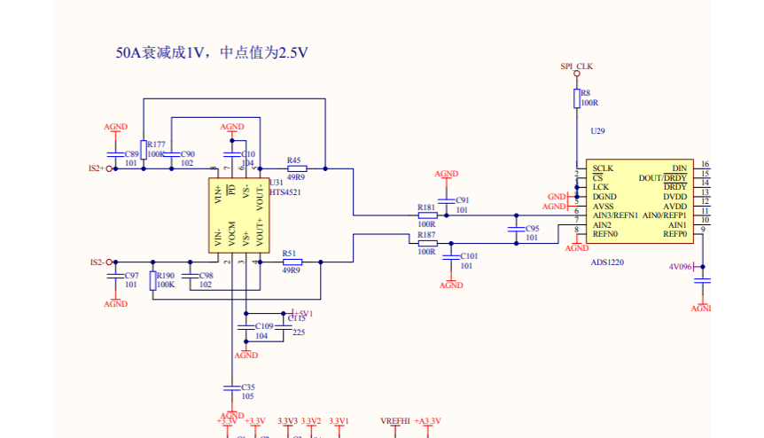 电路图如下图所示,THS4521电流放大10倍,差分输出用ADS1220再放大64倍后AD采样值跳动非常厉害,ADS1220不放大则跳动不厉害,用别的运放电路则不存在这个问题。是什么原因呢?