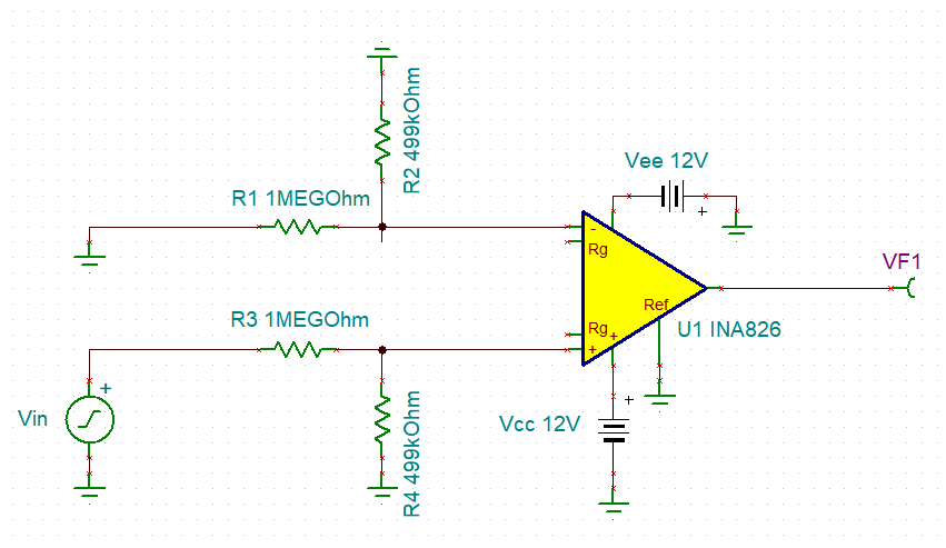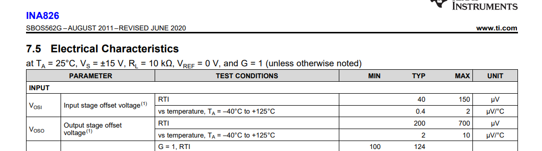 我现在使用INA826作为ADC前端缓冲,抑制共模信号,供电电压±12V,REF接地,RG配置为单位增益,每个输入端有1/3分压。现在没有输入时,即使直接将放大的的IN-和IN-短接后接到GND,常温下输出端也有0.6mV左右的失调电压。请问这个电压正常吗?
