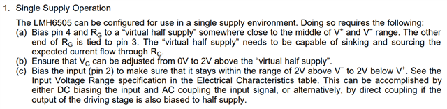 如果是单电源供电,datasheet中有给出单电源供电的电路连接方法: