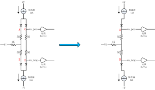 疑问:为什么不在A、B两点直接输出给负载运放(比如右图),用四个二极管的好处?