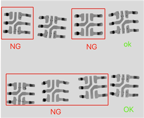 更换下来的零件INA210AIDCKT 照X-ray,发现部分材料没打金线和金线打错的现象,分析为原材不良,如下图:
