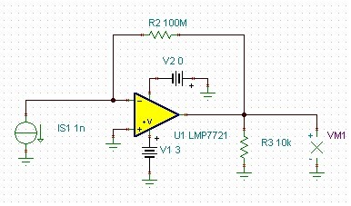 我用TI网站下载的LMP7721参考仿真模型,把电流源修改为1n,原来30n