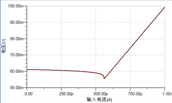 为什么在电流输入小于500pA,输出电压是60mv左右??