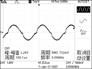 图3 是输入信号 20Khz 时 ,信号变形的更加厉害了。