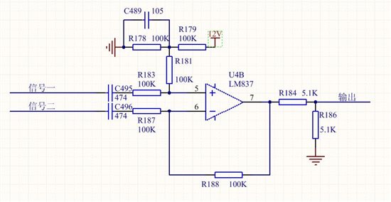 该电路采用的是单电源供电,12V经过分压之后给运放提供直流偏置