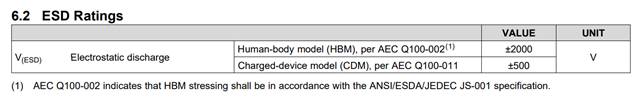 但它的汽车级芯片OPA356-Q1中给出了HBM和CDM等级,可以参考下: