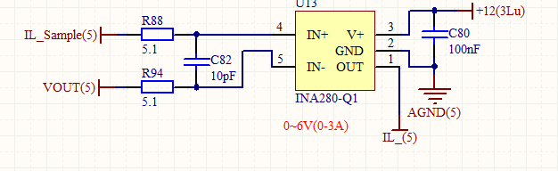 该芯片用与采样BUCK电路的电感电流,我选用的是INA280A4,也就是200V/V的,采样电阻选取的是10mΩ,