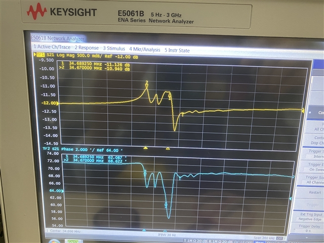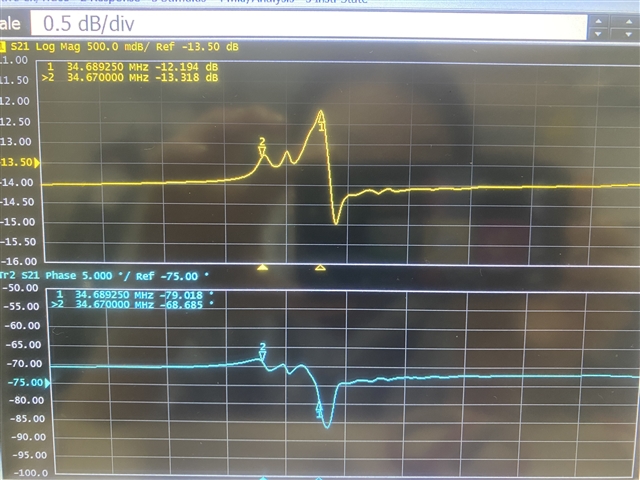 上图中黄色曲线和蓝色曲线分别是什么曲线?和您描述的输入信号幅值2.24mV不对应。