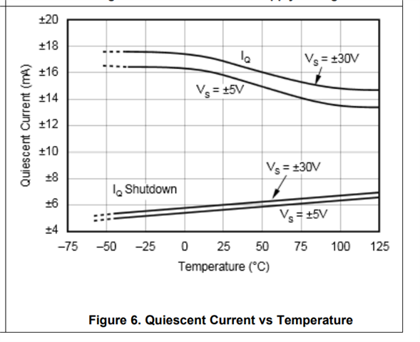 您好,抱歉回复晚了。没有负载的前提下,可以看到静态电流随温度的变化关系,75度时,+-30V的电流不到+-16mA。