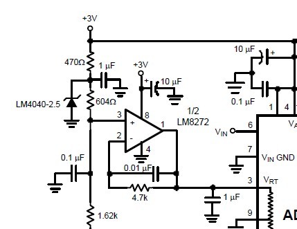 为了能够驱动一款ADC的顶参考电压,用LM8272做个跟随器.