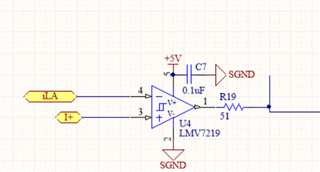 LMV7219在5V供电时内部有7.5mV的迟滞电压,且LMV7219也存在一定的输入失调电压,内部7.5mV的迟滞电压可以避免输入失调电压引起的输出异常,但如果两输入信号存在较大噪声就会引起输出在跳变处震荡,解决的办法一个就是降低输入信号上的噪声,输入干净的基准电压和交流信号,另一个方法是外加迟滞电路,如数据表8.2 Typical Application,Figure 14所示,8.2.2.1 Additional Hysteresis章节有设计过程,您可以参考。