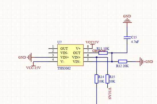 您好,如图是我的电路,是加法电路,可是芯片特别热呀,用THS3062DGK的时候,两次发生芯片自燃,现在用DDA封装的,也是特别特别热,真怕又自燃了。我用的是±12V供电的。