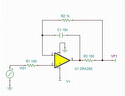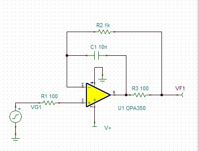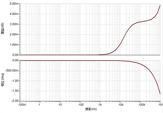 这是用ADS1271给的一个参考电压的电路图,中间opa350构成的电路,按理说这应该是一个低通的滤波器,但是我用TINA仿真分析,频率特性为什么会这样?