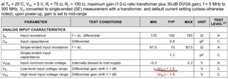 另外也可以推断,内部2.5V的偏置,根据模拟输入高低电平Vih和Vil的范围,最大输入范围为1.5V~3.5V(以2.5V为参考)的信号。