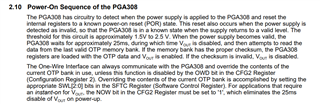 您好,抱歉回复晚了,下面时PGA308的power on sequence的介绍,您具体指的什么时间?这个25ms的时间吗?当电压起来变的有效时,PGA308 需要等待25ms,此期间Vout为disable状态。然后尝试去读取最后一此有效OTP memory bank。