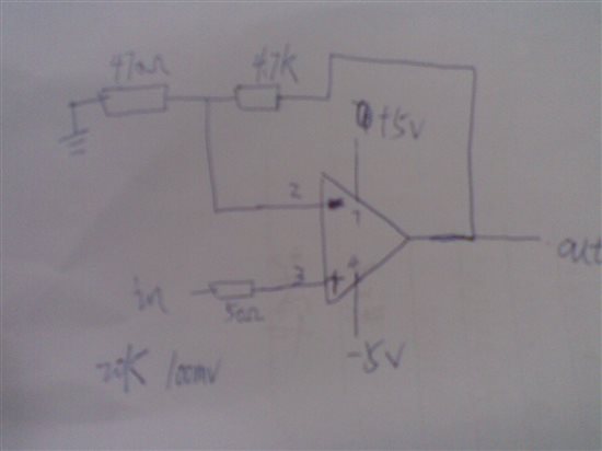 麻烦大家看一下,有问题吗?输入信号100mv的Vpp,低频的时候不出波形,高频(如1M)的时候是衰减的,求各位指点