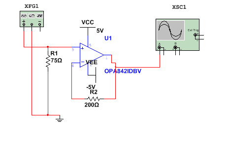 我用opa842连了个简单的跟随器,就是输出端直接反馈到反向端,为什么输出会衰减为一半?