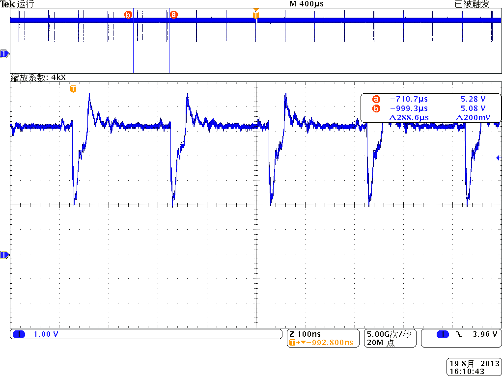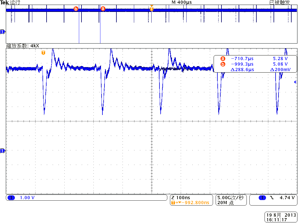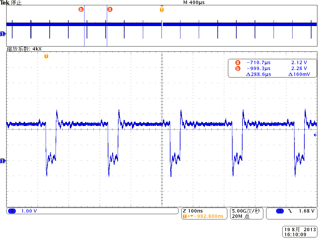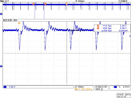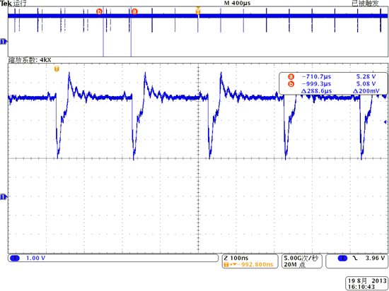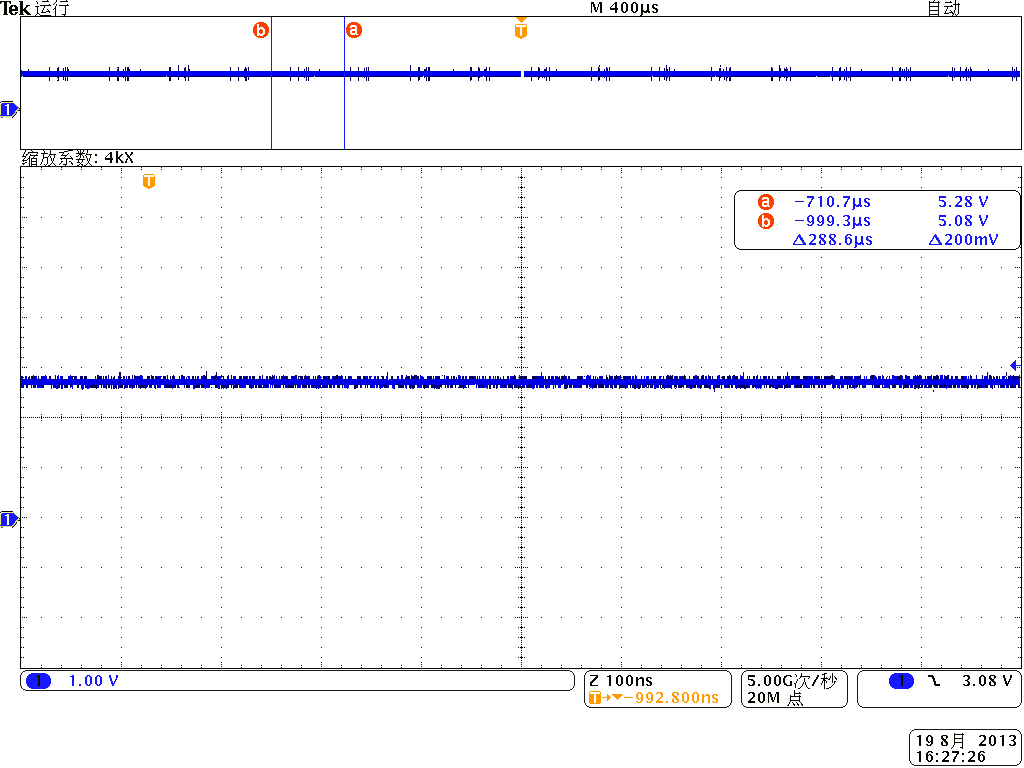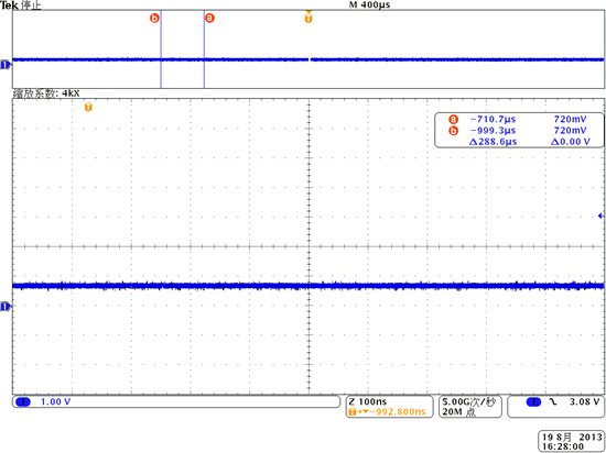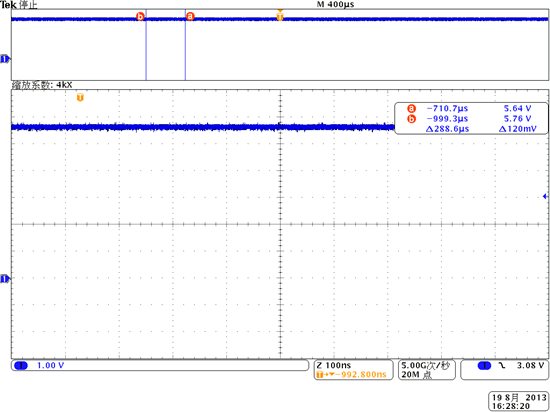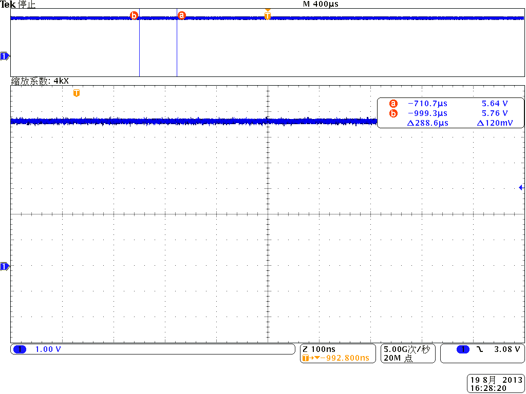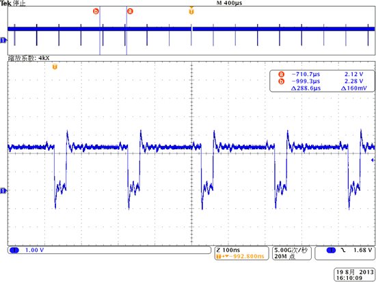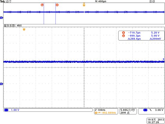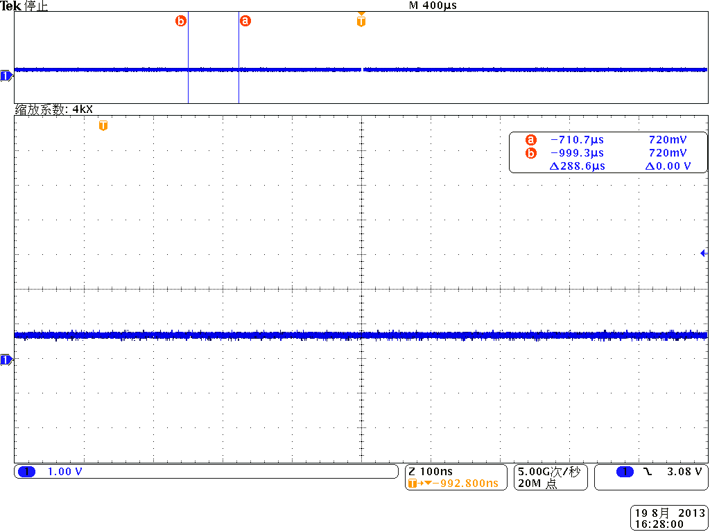 首先第一组是我输入时一个直流电平图1,图2为将电平接入到THS3201的输入端后的变化情况,图3是Vin-,图4为输出。