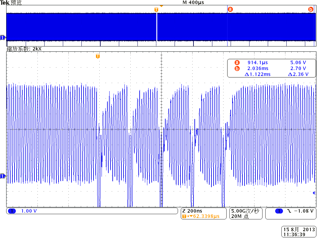 图7:跟上面直流的情况类似,信号幅值变的很低很低