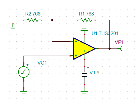 我现在只是从FPGA产生一个5M的时钟信号,经过THS3201做2倍放大,不管怎样修改匹配电阻,正负输入端都是不相等,添加负载,没有任何效果呀。