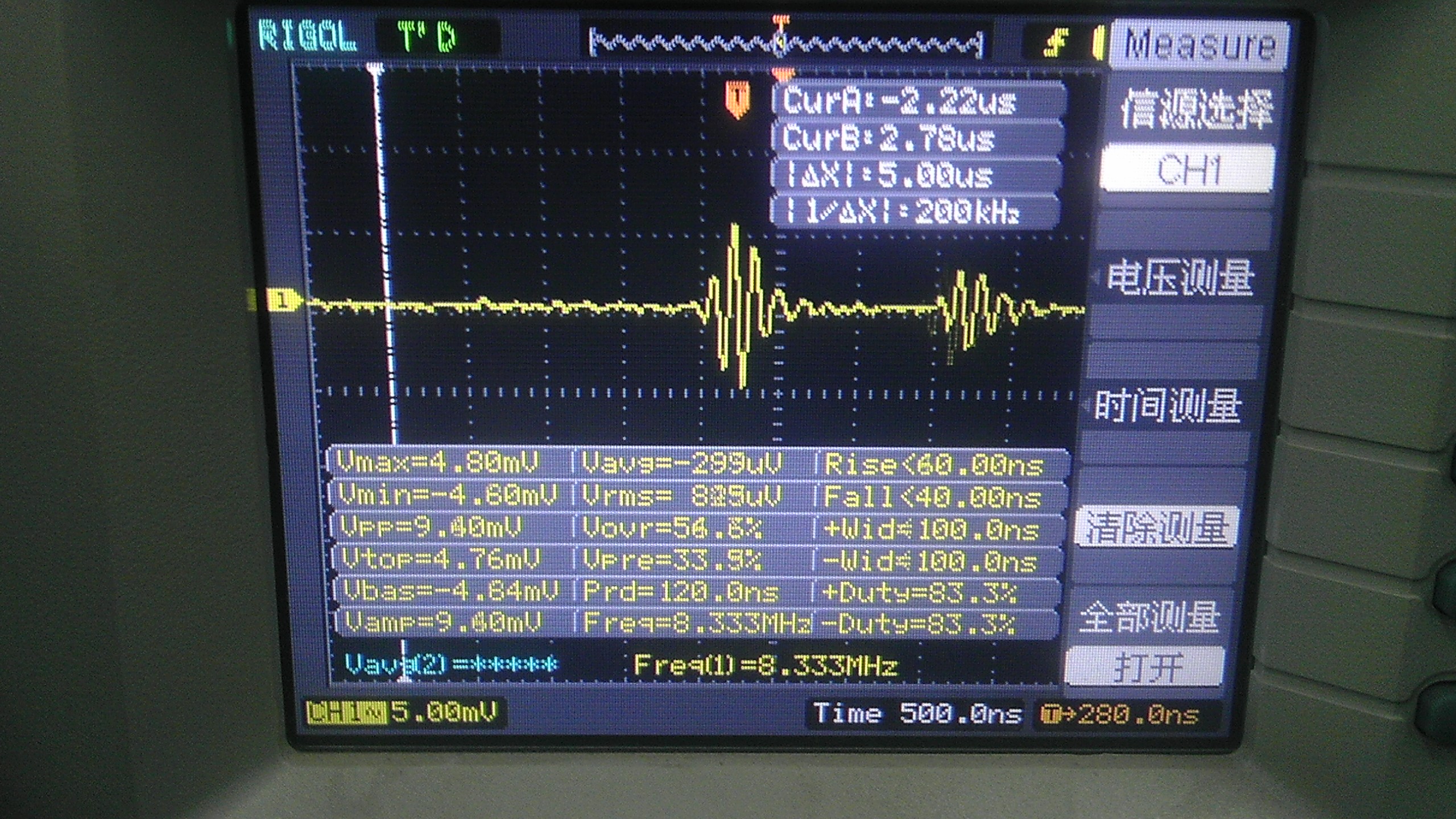 再增加第二级补偿,加C2,TP1上的正弦波消失了,但是变成了