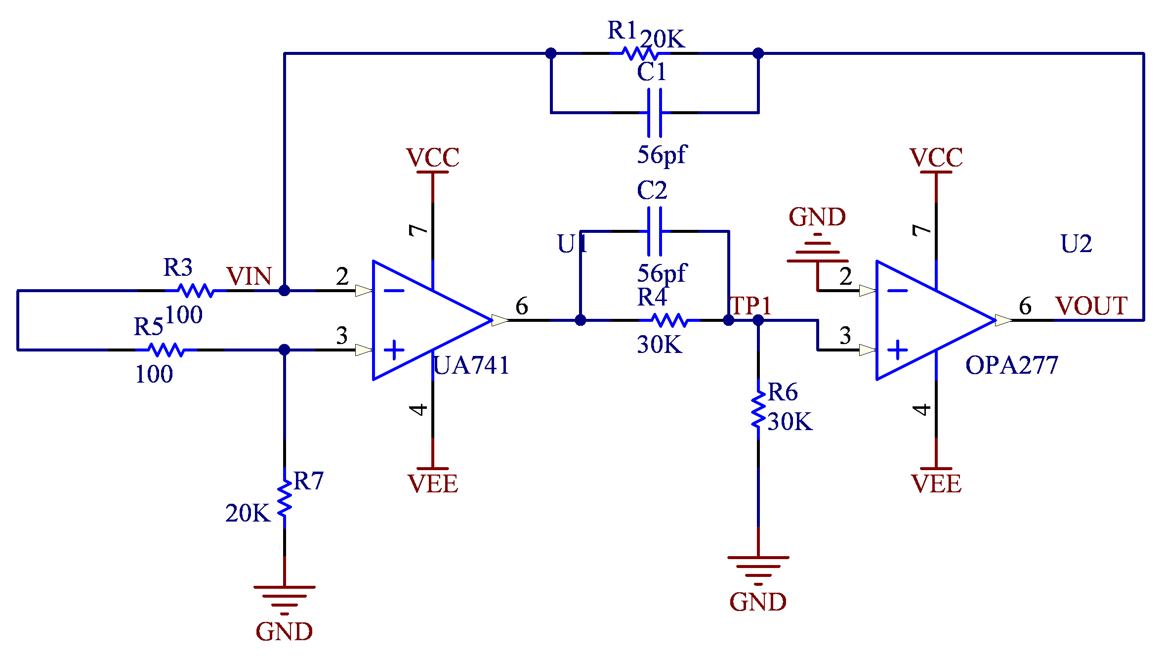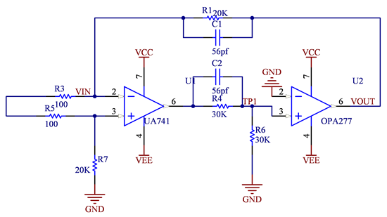 当不加C1和C2形成超前补偿的时候,输出自激振荡,OPA277的输出波形是三角波,最大值达到电源轨,频率有40k。TP1上是40k的正弦波。是不是波特图上40K形成了一个极点,为什么会有极点?