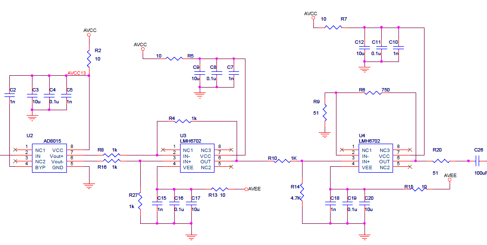 LMH6702 实现 200M 信号 1000倍放大该怎么设计