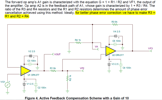 首先谢谢您的解答,这个电路其实是出自一篇 extending op amp bandwidth using acative feedback phase correction 的文章,这个电路的功能也是这样的。这是下面的一段话: