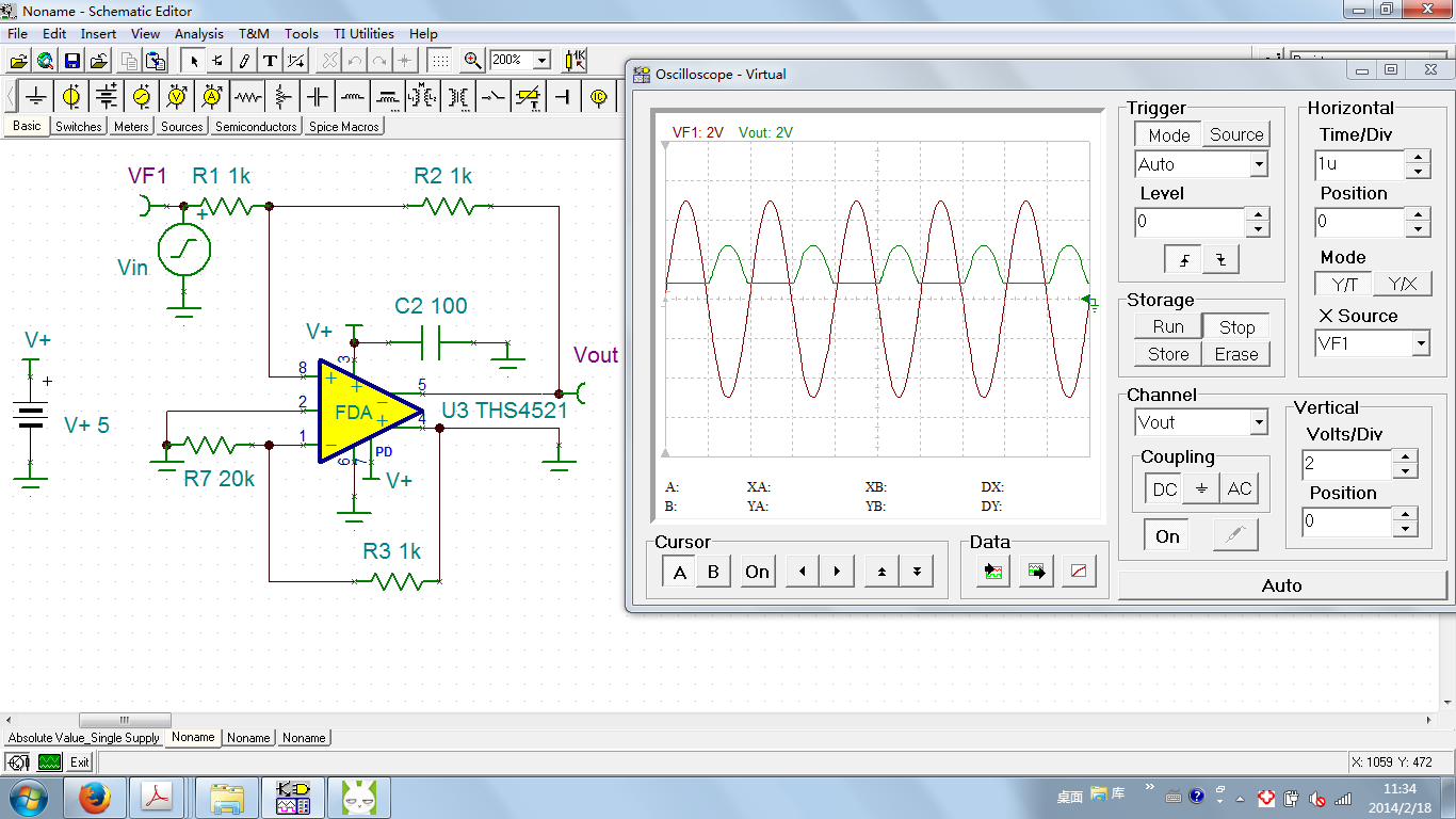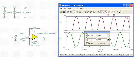 关于在TINA-TI下仿真差分放大器THS4521的信号处理问题