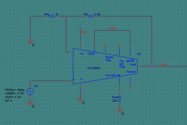 2,这个完全取决于您的负载,例如对于1欧,那么受最大电流(1.5A)限制,最大输出峰峰值为3V,因此可以计算功率,但对于大电阻负载来说,主要受摆幅限制,12V供电,OPA564在输出正负轨会有1-2V的摆幅限制。