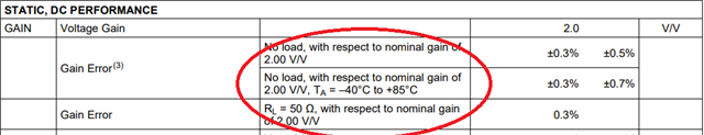 1、其中STATIC, DC PERFORMANCE 的 GIAN参数的介绍;是否可以理解默认增益为2V/V,对应R0输入1V,R0_OUT输出为2V吗;